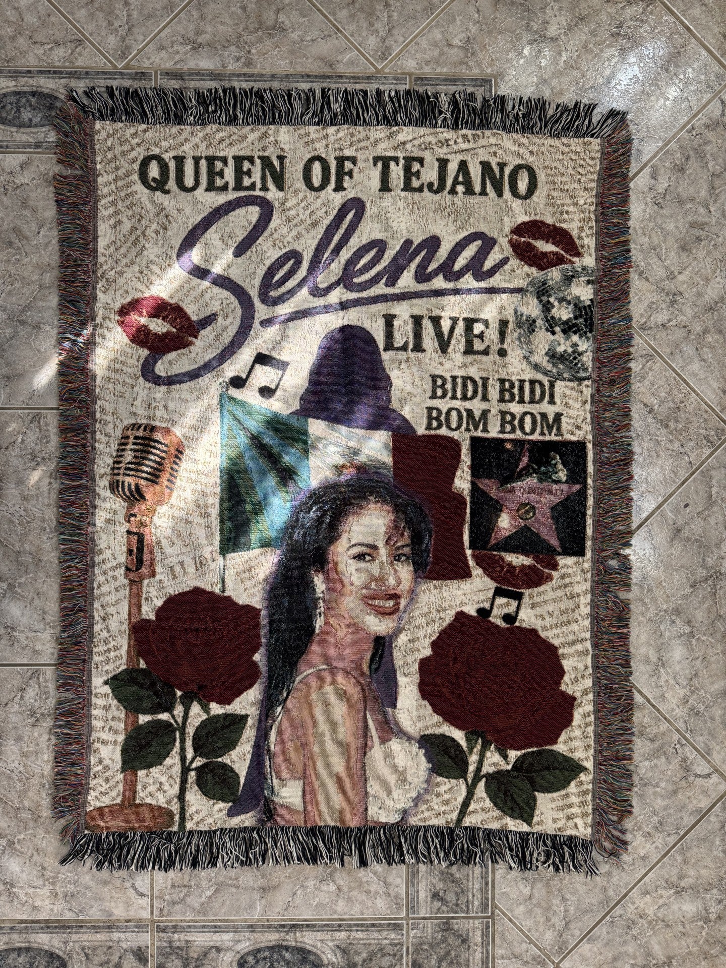 Our Selena-inspired blanket measures approximately 50 x 60 inches, perfect for your bed, couch, or as a decorative throw.